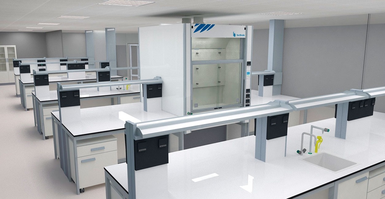 Les nouveaux laboratoires de Faes Farma ont une superficie de plus de 3 000 m2, avec deux zones équipées des technologies les plus avancées. Toute la zone des laboratoires a été équipée par Burdinola, aussi bien les laboratoires de contrôle de qualité -avec leurs salles de chromatographie en phase gazeuse, dissolution, balances, HPLC, zones de lavage, stockage...- que les laboratoires de microbiologie.